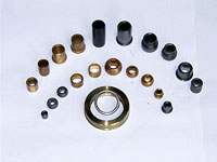 粉末冶金含油轴承是一类孔隙中含浸有润滑油的多孔性合金制品。当轴旋转时,因轴与含油轴承之间的摩擦使含油轴承的温度升高和泵吸作用。润滑油含渗出于含渗出于含油轴承之内径或外径的摩擦表面,当轴停止转动时。润滑油又回流于含油轴承内部。 因此,润滑油的消耗量是非常的小,可在不从外部供给润滑油的情况下,长期运转使用。非常适合于供油困难与避免润滑油污染的场合使用。含油轴承具有如下优点:①相对比滚动轴承噪音小。②振动小。③制品简易。④可省略加工作业、节材、省能。(材料利用率可达99.5%以上)⑤不需要特殊的供油机构,不需要从外部补加润滑油。⑥形状设计自由度大。⑦可制成一般熔铸法无法制造的几种金属或金属与非金属的镀金材料,综上所述特性与优点,使我公司含油轴承大量的应用于:电机行业、说摩行业、家电行业、数码产品、办公设备、电动工具、纺织机械、包装机械等各类机械设备上,并使应用单位产生了良好的经济效益!⑧特别适于大批量生产,和多孔材料制品,价格低廉!  |